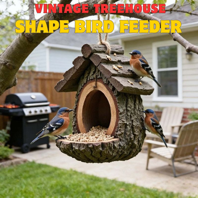 Bring a touch of vintage charm to your garden with this Vintage Treehouse Shape Bird Feeder.Designed to look like a rustic woodland birdhouse, it combines decorative beauty with practical feeding space. The hand-painted-style finish adds warmth and character, while the open platform makes it easy for birds to perch and feed. A lovely way to enjoy birdwatching while enhancing your outdoor décor.
